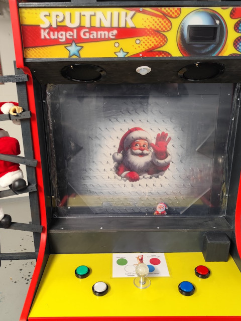 Netzteile: 5 Volt 4 A / 2 x 12 Volt 6.5 A Timer Boards: 12 Stück Relais Boards: 6 Stück Sound Boards: 3 Stück Lautsprecher: 5 Stück Verlegte Kabel: ca. 18 Rollen a 50 Meter (knapp 1 Kilometer) Lüsterklemmen: 10 Fernsteuermodul für Power-On und Steuerung PIR Sensor für automatisches Einschalten Joystick Steuerung mit Arduino Servo-Steuerung für Geschenkausgabe Motoren für Joystick, Vereinzelung der Kugeln und Geschenke